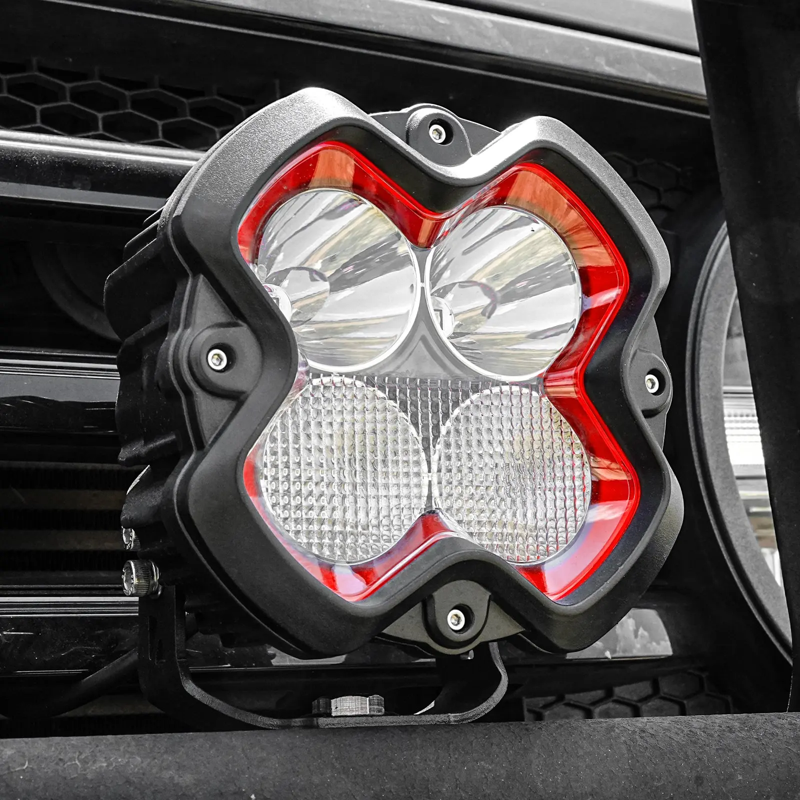 Engineered for fearless off-roaders, the HALO SE LED pod lights combine fierce performance with standout style. Featuring a striking red housing and dual-color daytime running lights (white/red), they offer superior visibility and a bold, aggressive look. Whether you’re navigating shadowy forest trails or powering through rugged terrain, HALO SE helps your vehicle command attention. Add multiple sets to amplify the impact and make your ride truly unforgettable.